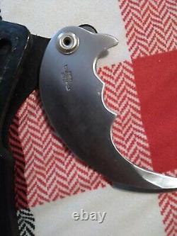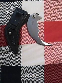 This rare vintage Kempo claw prototype designed by "Gill Hibbin" fixed blade knife is a must-have for any collector or outdoor enthusiast. The knife features a stainless steel blade with a plain edge and a full tang, making it suitable for everyday carry, combat, boot, and survival situations.